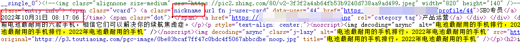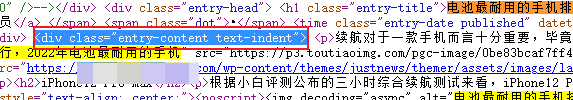 通过文章内容找到旁边的div标签是唯一识别的标签(经验之谈,一般在class中包含content),咱们就可以确定内容的开始标签。