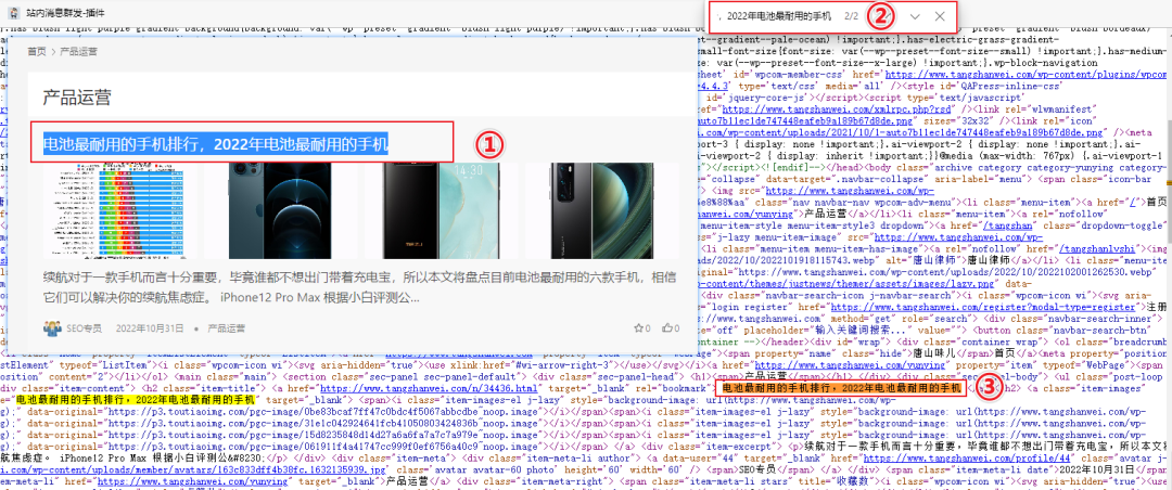 Ctrl+F 搜索源代码中包含列表页的第一条数据的标题,并寻找与该标题临近的一个唯一标签。