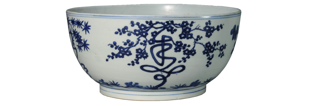 明万历 青花“寿”字松竹梅图洗
