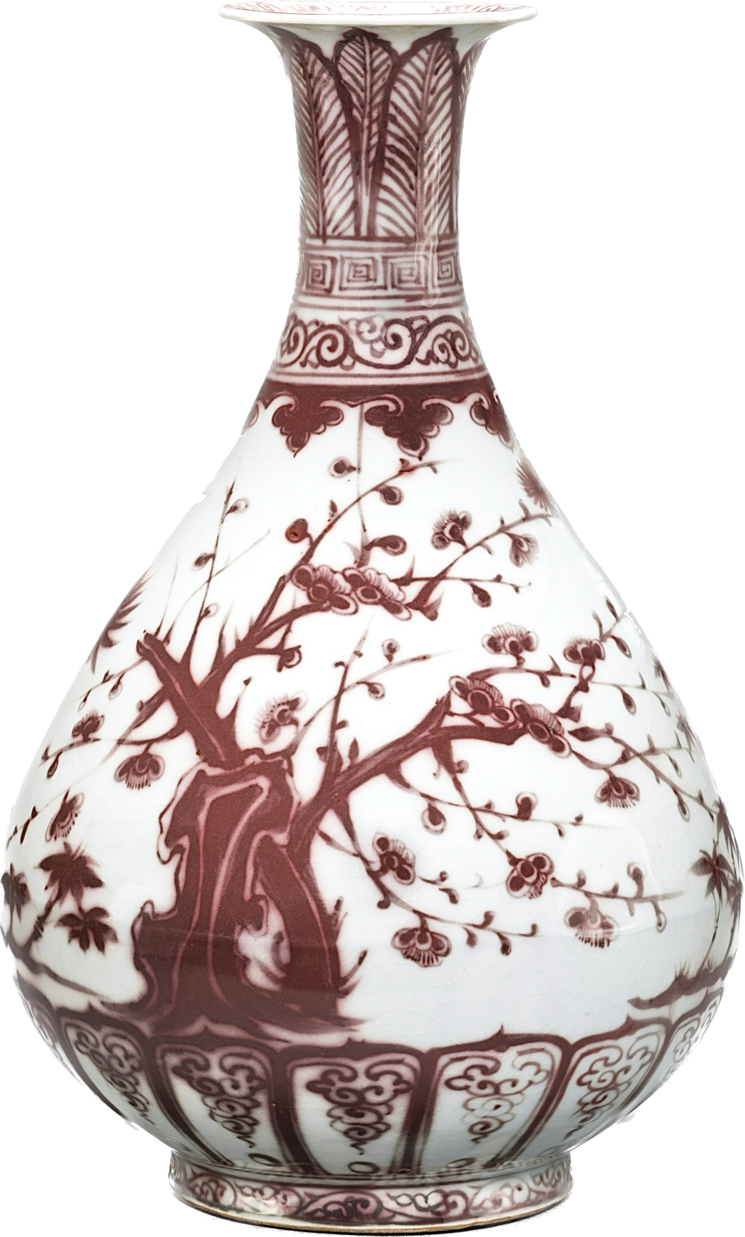 明洪武 釉里红松竹梅图玉壶春瓶