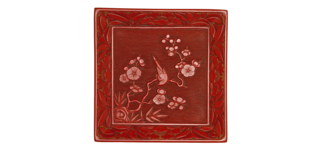 明 剔红寒鹊梅竹纹方盘